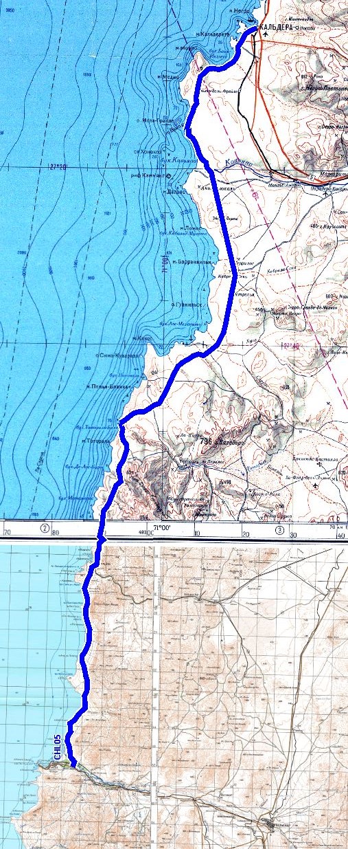 Sehr schöne und wenig befahren Piste in einer einsamen Region entlang der Küste. Es gibt zahlreiche Stellmöglichkeiten am Strand. Das Meer hat jedoch häufig eine starke Brandung, so dass die Gischt sich auf dem Fahrzeug niederschlägt. Beim Baden (in relativ kaltem Wasser) muss man auch auf die starke Strömung achten. Es gibt nur wenige kleine Fischersiedlungen entlang der Küste. Nördlich von Huasco und südlich von Caldera bevölkern in der Sommersaison Touristen die Strände. Nur hier gibt es dann entsprechende Versorgungsmöglichkeiten. |