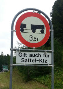 immer rechtzeitig über die Beschränkungen der Straßen im Klaren und meckert erst