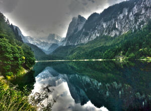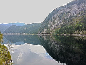 kurvenreich entlang steiler Felswände führt. Als ich nach Gosau komme denke ich